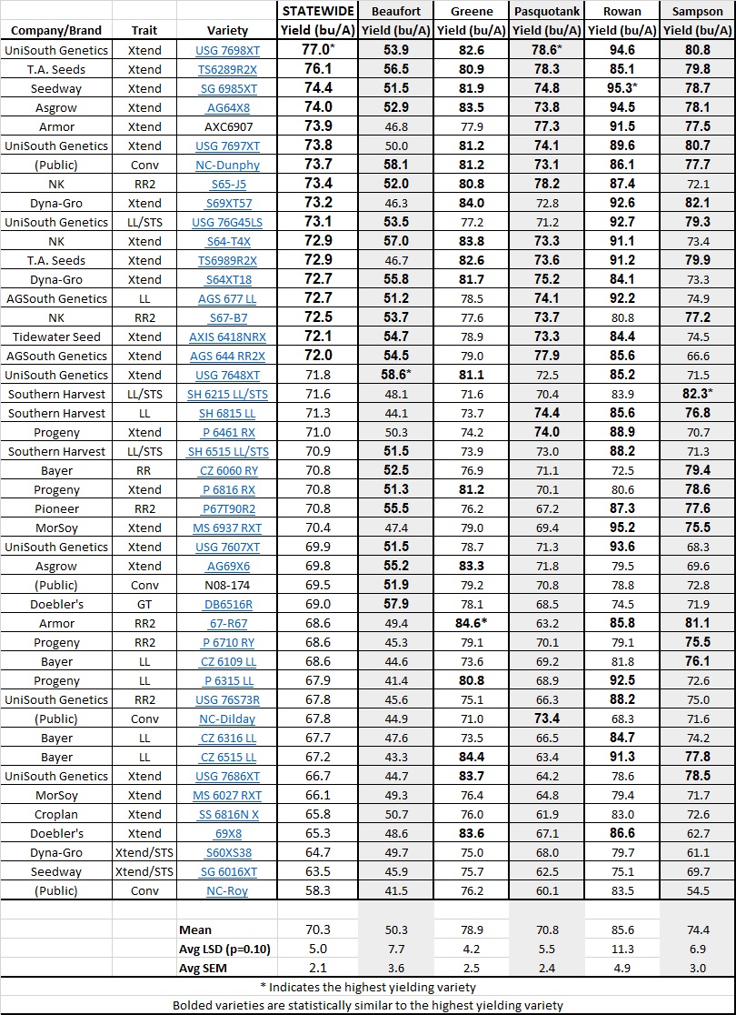 Each variety name in this table and the linked PDF are hyperlinked. Clicking on the link will take you to the tech sheet or seed guide for that variety, if it exists. This is included in order to provide more characteristic information for each variety. The inclusion of these links does NOT indicate preference for or recommendation of any variety by NCSU.