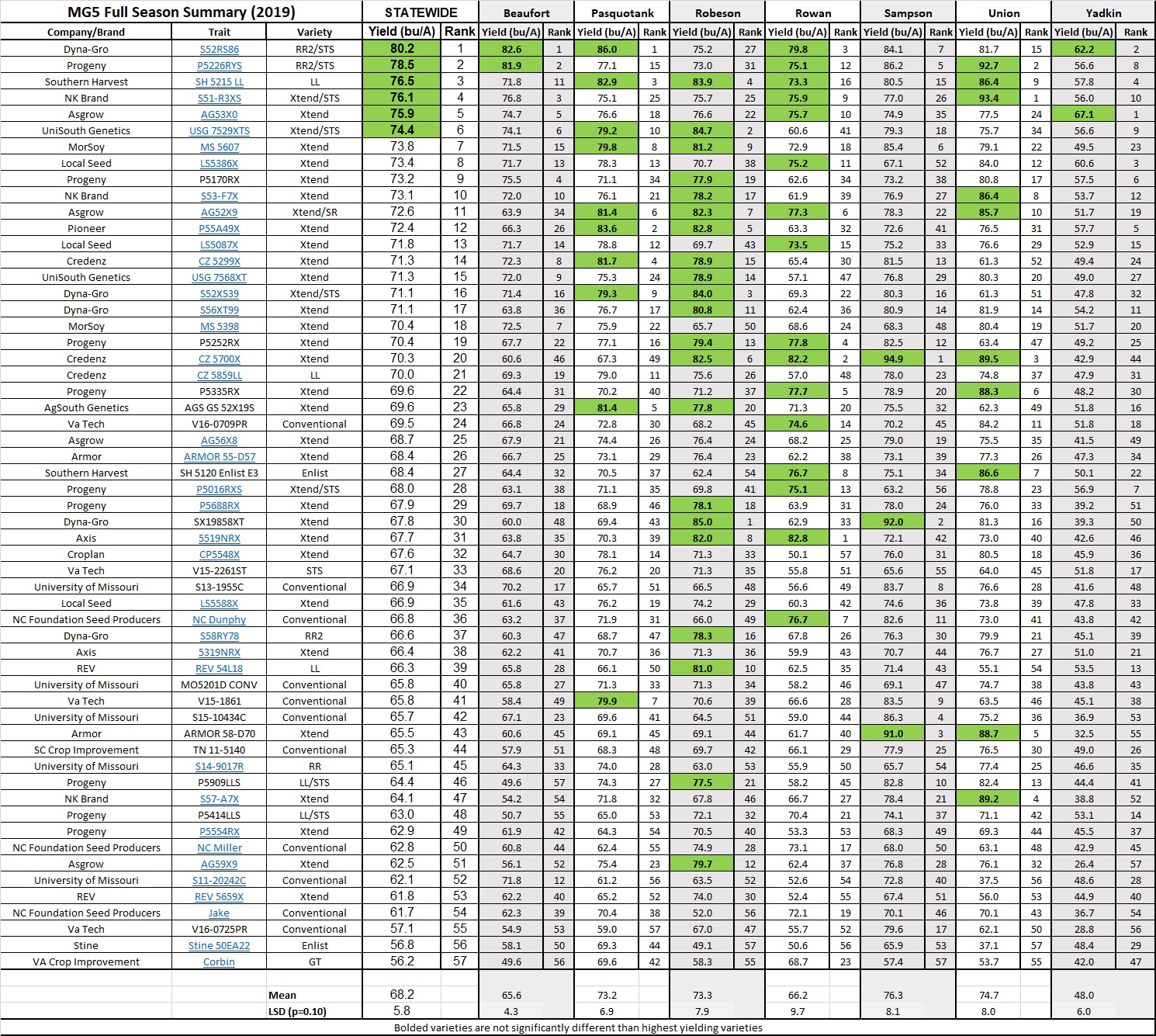 MG5 Full Season Location Summary - 2019