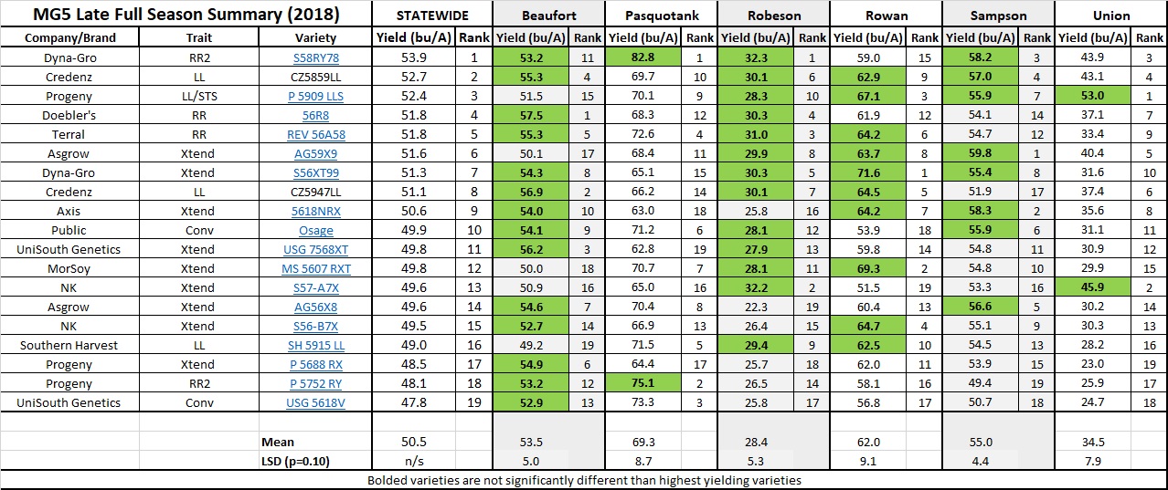 Each hybrid name in this table and the linked PDF are hyperlinked. Clicking on the link will take you to the tech sheet or seed guide for that hybrid if it exists. This is included in order to provide more characteristic information for each hybrid. The inclusion of these links does NOT indicate a preference for or recommendation of any hybrid by NC State University, nor is NC State University responsible for the upkeep and content of those tech sheets.