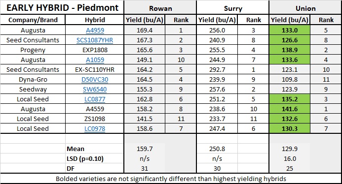 Piedmont Summary 2019 - Early Hybrids